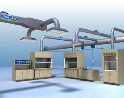 VAV系統是一種整體建筑通風系統,其中包含傳感器,可根據窗扇位置調節排氣和供氣(圖片由Tek-Air提供)。例如,如果一個人在通風櫥里完成了他們當天的工作,并且通風櫥有一個VAV系統,則關閉窗扇會啟動一個自動(和安全)的響應,關閉通向通風櫥排氣的閥門,減少回火的空氣量。它還向供氣發送信號,告訴它調低進入實驗室的空氣量。通過這個動作,調節和耗盡的空氣量都降低了; 因此,當窗扇降低時,實驗室可以節省能源!