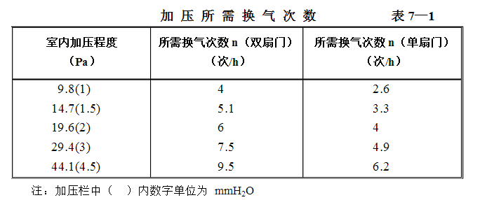 潔凈室內加壓空氣量shou要決定于滲漏風量,若以換氣次數(shù)表明加壓風量,可參閱表7—1,在概算時,換氣次數(shù)取2-3次。
