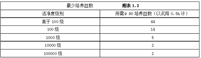 沉降菌測定時,培養皿應布置在有代表性的地點和氣流擾動極小的地點,培養皿數可與按附表1.1確定的采樣點數相同,但培養皿**少數量應滿足附表1.2的規定。 #p#分頁標題#e#