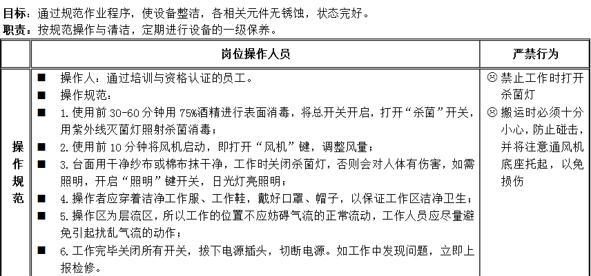 超凈工作臺標準操作規程介紹